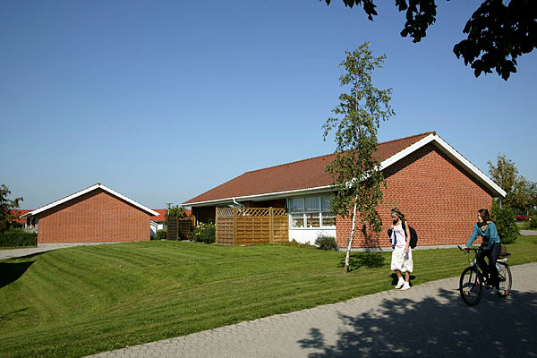 Hvert rækkehus har en lille have med terrasse samt eget udhus på ca. 5,5 m2. Udhusene er sammenbygget med boligen og har indgang umiddelbart udenfor hoveddøren.